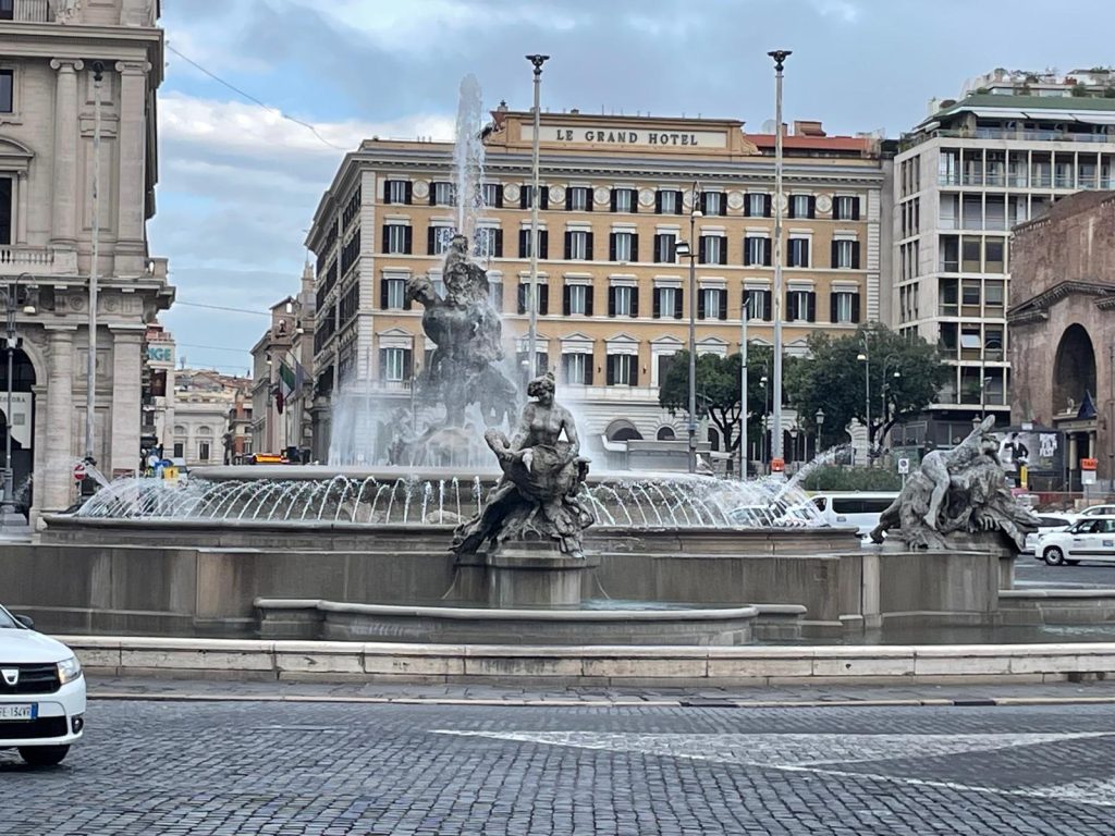 The day began with a walk through Piazza della Repubblica, where the splendid Fountain of the Naiads stands, a monumental work that celebrates the ancient Aqua Marcia aqueduct. Built in 144 BC, this aqueduct was one of the most important in ancient Rome, providing crystal-clear water to the city for centuries. The fountain, originally constructed in a temporary form in 1870, was later redesigned by engineer Alessandro Guerrieri in 1888, who initially planned to place four sphinxes around the central basin. However, it was only with the intervention of the Sicilian sculptor Giuseppe Rutelli (grandfather of former mayor Francesco Rutelli) that the fountain took its final form.