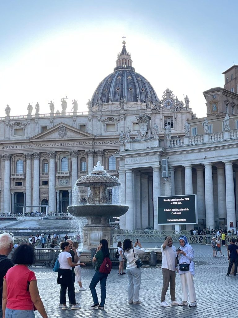 After exploring the city’s architectural wonders, Bertelli headed to Vatican City, entering areas closed to the public, shrouded in mystery and at the spiritual heart of Catholicism. Beyond the imposing Vatican walls, the group ventured into the Vatican Gardens, an oasis of peace spanning half the Vatican’s territory. Created in the 14th century, the gardens are a perfect example of Renaissance garden design, adorned with fountains, classical statues, and exotic plants. Here, far from the city’s chaos, the Pope and other clergy members retreat for moments of meditation and reflection.